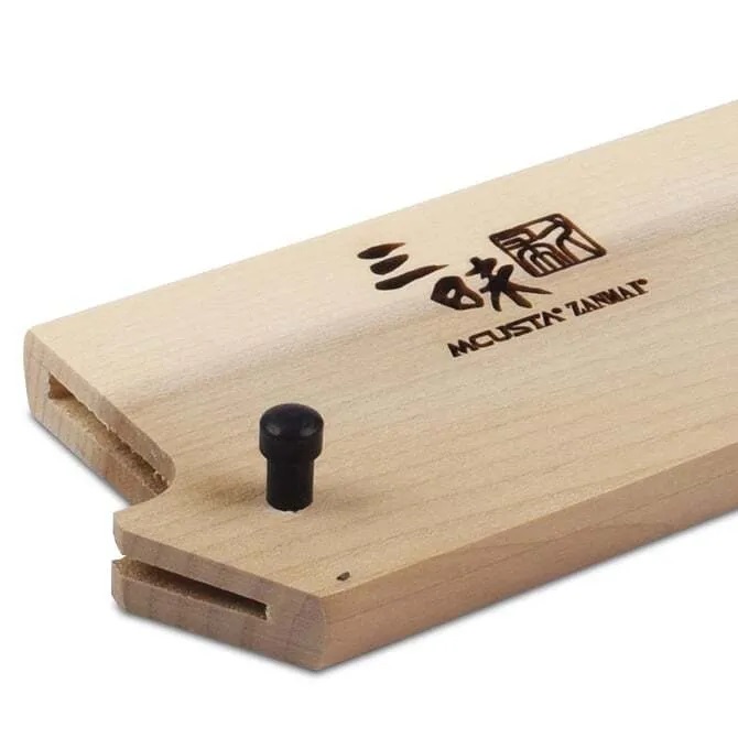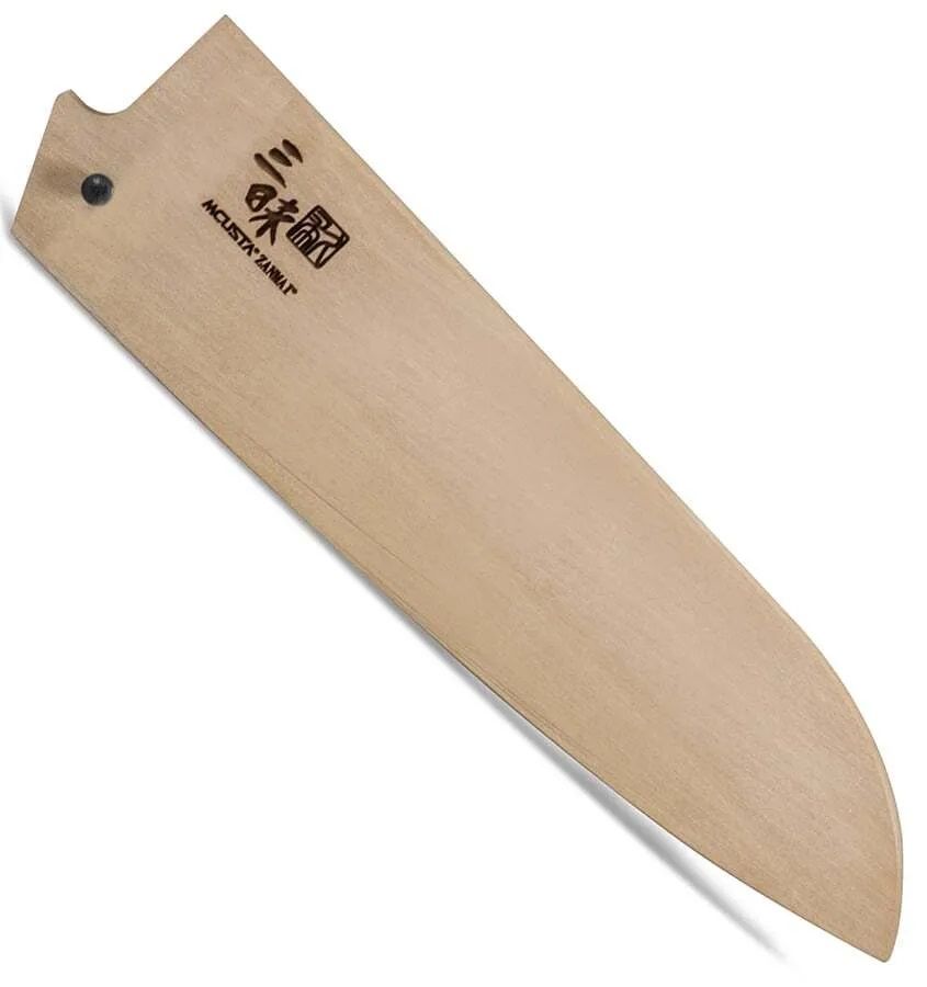 Mcusta Black wooden lacquered sheath Saya suitable for a Japanese Santoku knife with a blade length of up to 18 cm. Mcusta Zanmai Saya are made from magnolia wood harvested from Honoki trees in Japan, the same material used for centuries to protect Japanese Katana swords. The magnolia wood sheath is moisture resistant and soft, which won't scratch the elegant blades. For safety purposes, a pin is used to hold the blade and sheath in place. *There is a possibility that the saya sheath will not fit your knife. Because the actual thickness and size of a knife can vary, even if their stated blade size looks the same in the spec. This saya is 100% suitable for Mcusta Zanmai Santoku knife with a blade length of up to 18 cm. For models from other manufacturers, please ask our consultants.
