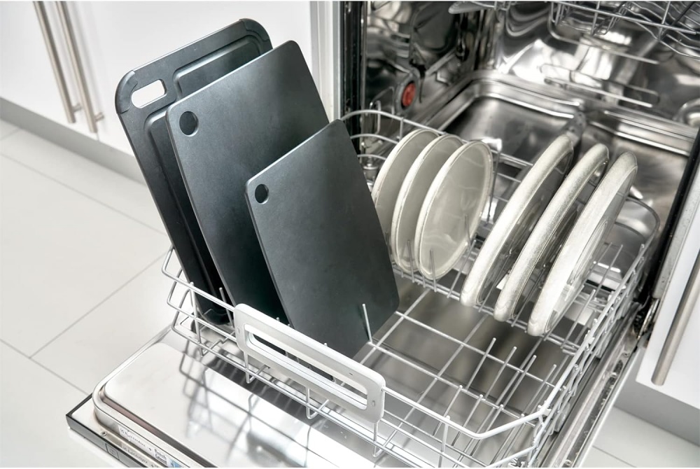 A wood cutting board that goes in the dishwasher? Hallelujah! The original Epicurean cutting board is the classic “go-to” all-purpose surface for everyday food preparation. With a natural look and texture from an eco-friendly, organic, wood fibre composite, these boards are super durable, nonporous, knife friendly and dishwasher safe. This is the perfect everyday board for sanitary food preparation and easy cleanup.