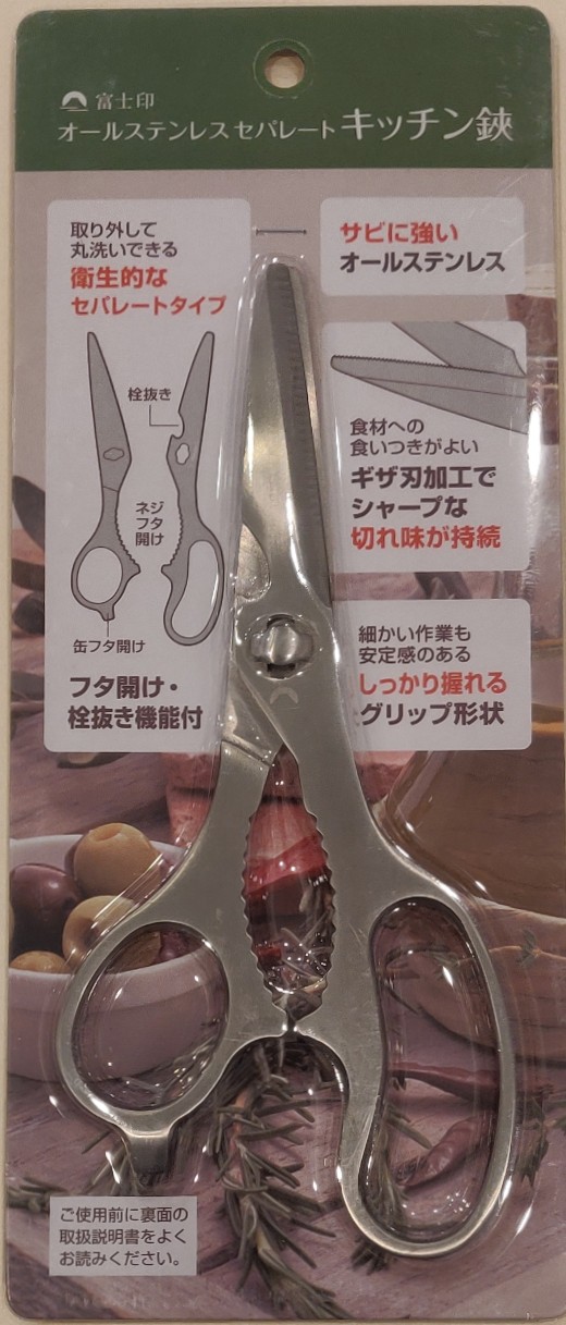 Kitchen scissors Fuji Cutlery - a tool with an additional set of functions. They can not only easily cut anything (fins, plastic packaging, cut chicken, etc.), but also open cans, crack nuts and perform other manipulations. Such a versatile tool should be in any kitchen.
