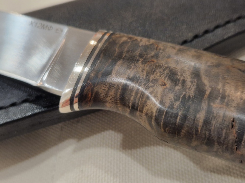 The composition has become well balanced and thanks to it the X12MF is so widely used. The letter “X” and the number “12” in the name indicate the average amount of chromium (CR) in the composition, it is 11-12.5%. As you know, chrome is an alloying additive responsible for the corrosion resistance of steel. Such an amount of this element in the composition allows us to consider X12MF relatively stainless steel. The carbon content (C), which is responsible for strength and hardness, is 1.45- 1.65 %. The hardness with proper heat treatment is 62-64 HRC, but as you know, high hardness entails an increase in fragility, and other alloying elements that increase the quality and technical characteristics of the steel, such as molybdenum ) 0.4-0.6%, Vanadium (V) 0.15-0.3%, manganese (MN) 0.15-0.45%, nickel (NI) up to 0.4%and in minimal quantities of silicon silicon (Si), phosphorus (p) and copper (CU). Based on all of the above, consider the pros and cons of the X12MF steel directly in the knives.