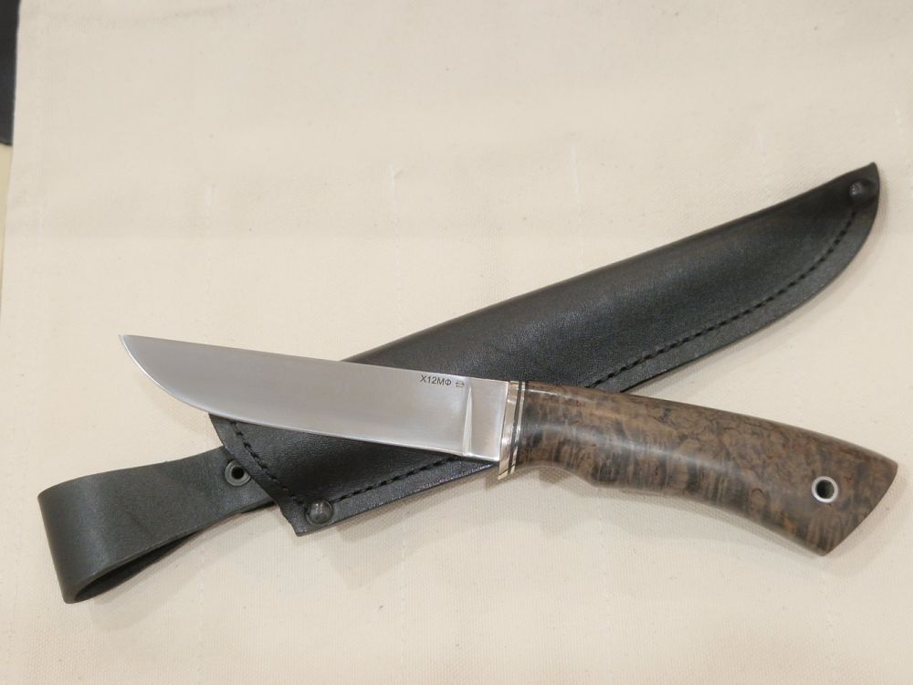 The composition has become well balanced and thanks to it the X12MF is so widely used. The letter “X” and the number “12” in the name indicate the average amount of chromium (CR) in the composition, it is 11-12.5%. As you know, chrome is an alloying additive responsible for the corrosion resistance of steel. Such an amount of this element in the composition allows us to consider X12MF relatively stainless steel. The carbon content (C), which is responsible for strength and hardness, is 1.45- 1.65 %. The hardness with proper heat treatment is 62-64 HRC, but as you know, high hardness entails an increase in fragility, and other alloying elements that increase the quality and technical characteristics of the steel, such as molybdenum ) 0.4-0.6%, Vanadium (V) 0.15-0.3%, manganese (MN) 0.15-0.45%, nickel (NI) up to 0.4%and in minimal quantities of silicon silicon (Si), phosphorus (p) and copper (CU). Based on all of the above, consider the pros and cons of the X12MF steel directly in the knives.