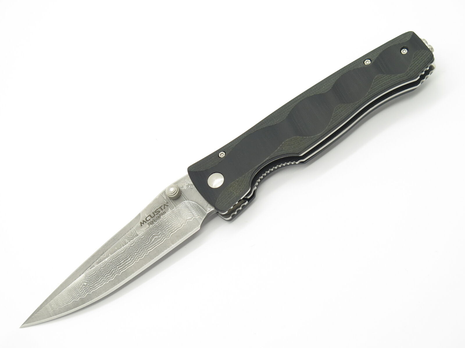 This Mcusta Tactility MC-0121D knife has damsacus blade. The handles are made of Black Micarta and has a contoured grip. One hand opening with locking liner. Pocket clip features a decorative script cut out. Weight of Mcusta Tactility MC-0121D knife is 107 g. MCUSTA Knives are true masterpieces combining traditional Japanese elements and craftsmanship with modern cutting-edge technology to create a "user friendly" pocket knife that is beautiful, unique and functional. Unlike most mass production knives which are die stamped, each component of MCUSTA knives is laser cut for the ultimate in precision and fit. Every knife is then hand assembled and hand finished by an experienced craftsman. This process creates a superior knife at a reasonable price. MCUSTA stands for Machine Custom Knives!