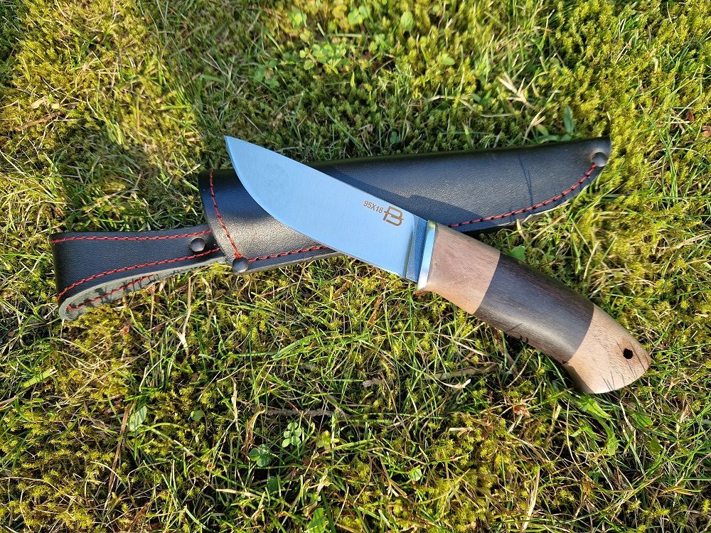 A young workshop from Lithuania for the production of high quality knives for hunting, fishing and other activities. Each knife is unique, as it is created by hand. The handles have a unique pattern and texture, which makes the Brothers Berezhny products individual. Thanks to wood stabilization, Brothers Berezhnye products are not subject to deformation, delamination, and other negative factors. Steel 95x18 is stainless steel, unpretentious in maintenance, which is important in the forest or fishing. This steel is forged, so it stays sharp for a long time and is resistant to side loads and chips. In addition, it has a low cost, which makes it popular among users.
