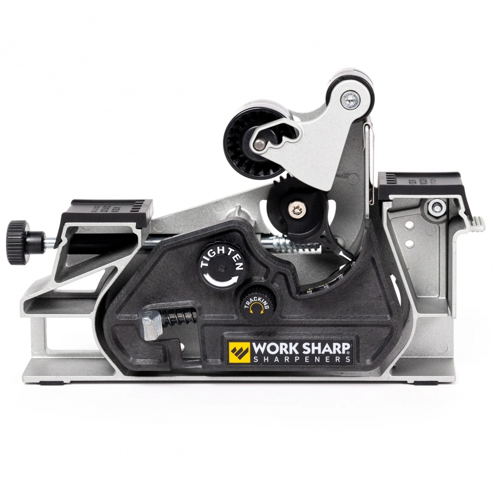 Blade Grinding Attachment Work Sharp Ken Onion MK.2 turns your Work Sharp Ken Onion Mk.2 into a large belt sharpener! This extension extends the sharpener and gives you more control when sharpening knives. Larger sharpening straps measuring 2.5 cm x 45 cm, fully adjustable sharpening angles from 10° to 35° and three curved edge settings give you complete control over your knife sharpening.