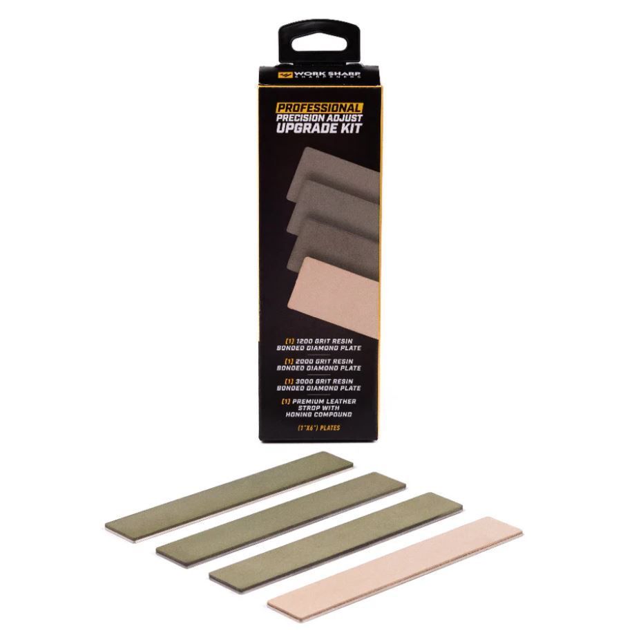 The Work Sharp Professional Precision Adjust™ Upgrade Kit is designed exclusively for the Professional Precision Adjust Knife Sharpener, adding advanced refinement to your sharpening system. Including 1200, 2000, and 3000 grit resin-bonded diamond plates and a premium leather strop with 0.5-micron chromium oxide, this kit delivers mirror-polished bevels and surgically sharp edges. Perfect for chefs, collectors, and outdoor enthusiasts, it refines and polishes every blade to perfection. Take your knives from sharp to surgical!