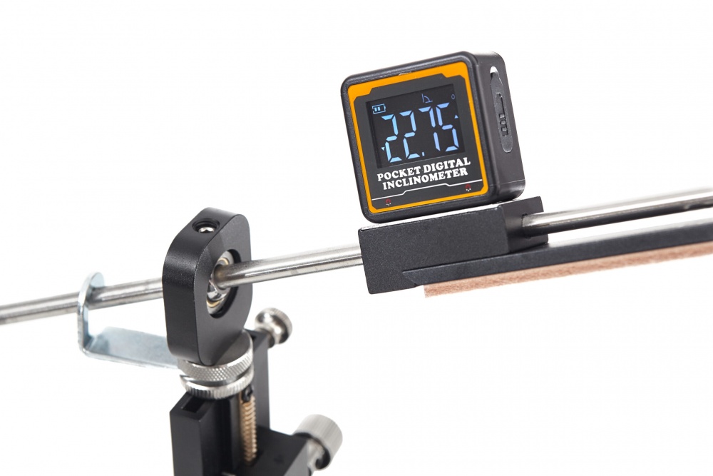 Magnetic inclinometer to set angle before sharpening + locks and micro-adjustments .