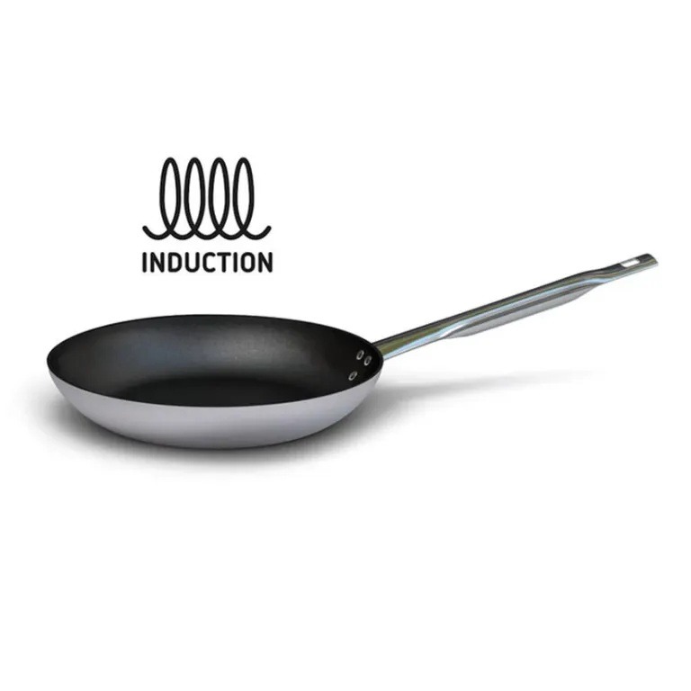 The 4mm thick non-stick aluminum low flared pan for induction is ideal for sautéing pasta, vegetables and for the preparation of omelettes