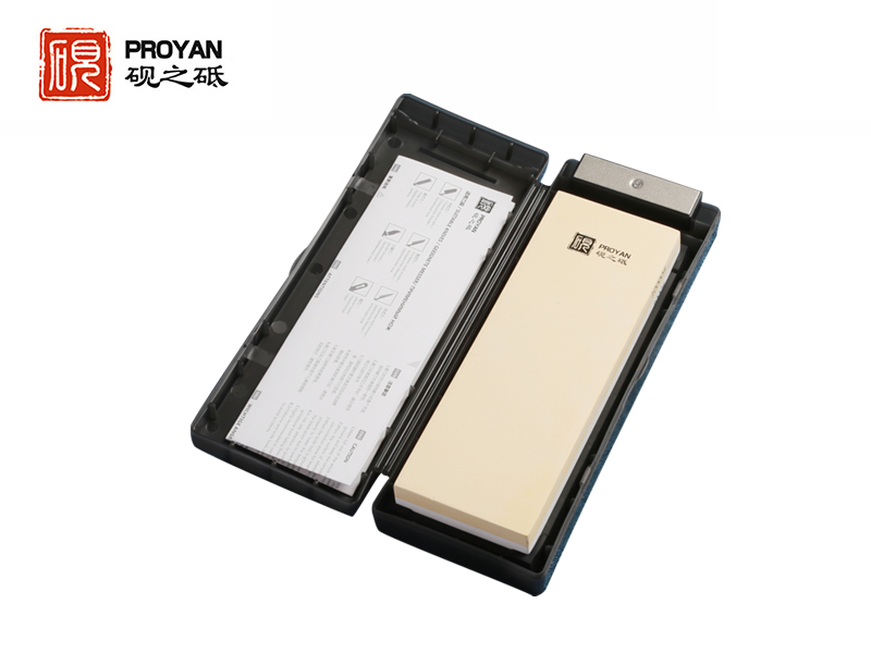 Liels, abpusējs asināšanas akmens nažu un instrumentu asināšanai un kopšanai. Graudu izmērs: smalks un ekstra smalks. Pēc lietošanas statīvu var izmantot kā praktisku glabāšanas kastīti.