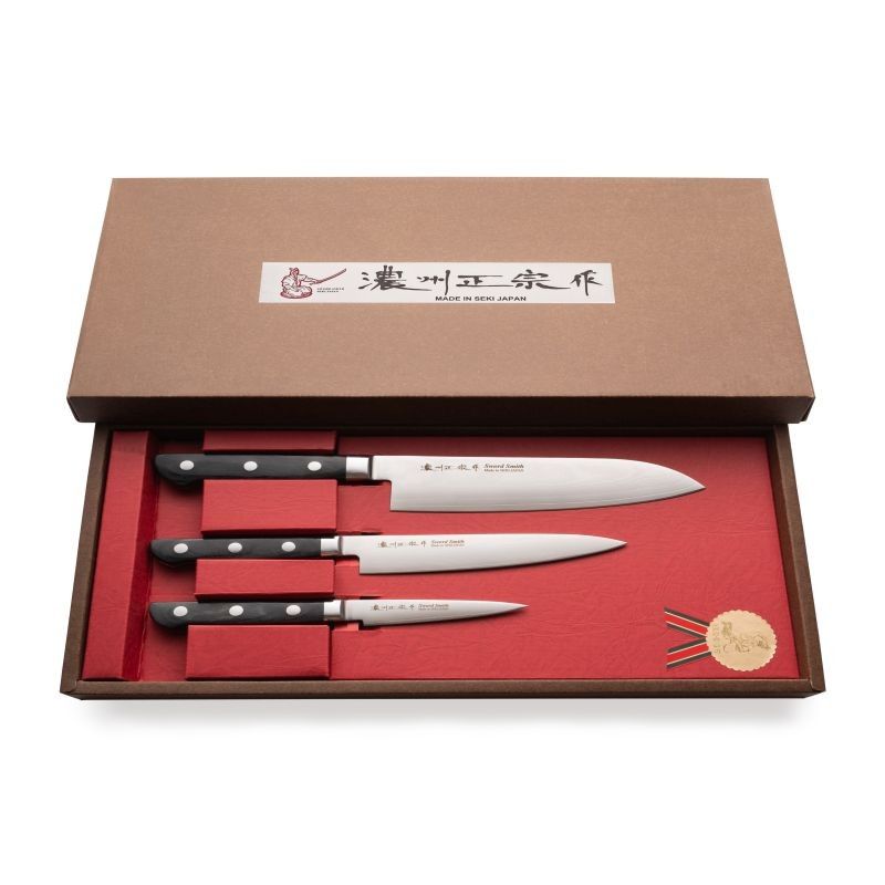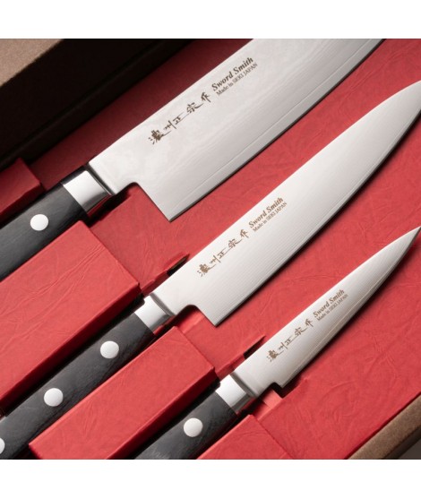 3 Japāņu Damaskas tērauda nažu komplekts Satake.