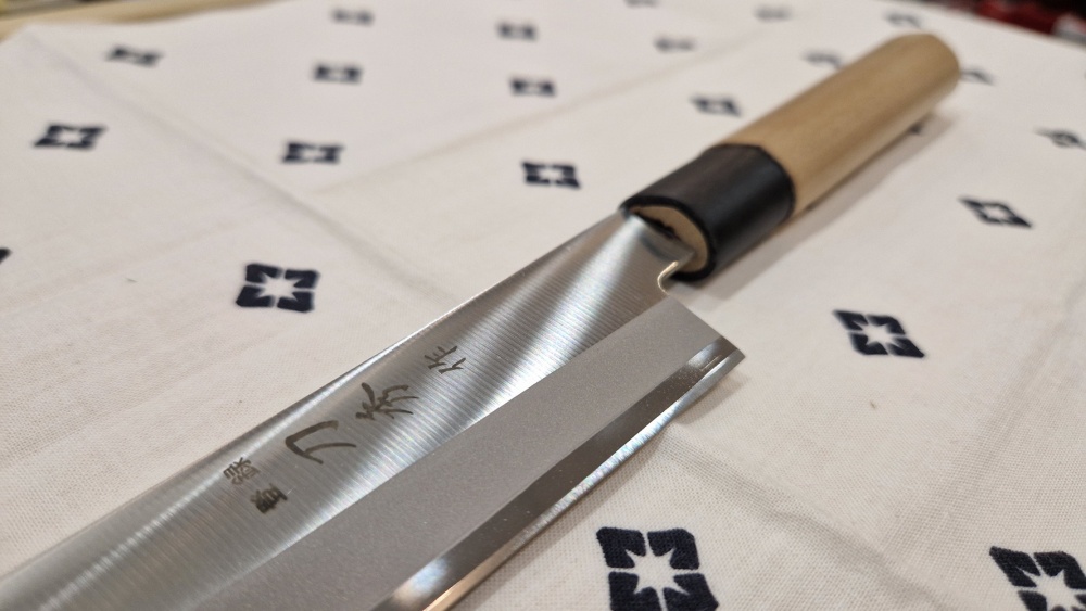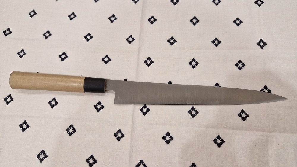 Nazis asināts no vienas puses. Nazis piemērots zivju filejas plānai griešanai, suši, sašimi, rollu taisīšanai.