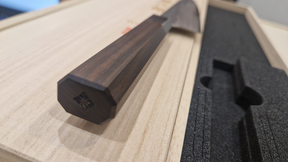 Rokturis ir izgatavots no ebony koka. Tas ir tumšs koka veids ar ļoti jauku rakstu. Rokturim ir tradicionāla, japāņu astoņstūra forma. Rezultātā nazis ir piemērots lietošanai gan ar kreiso roku, gan ar labo roku. Šo astoņstūra formu bieži izmanto augstas kvalitātes japāņu virtuves nažiem.