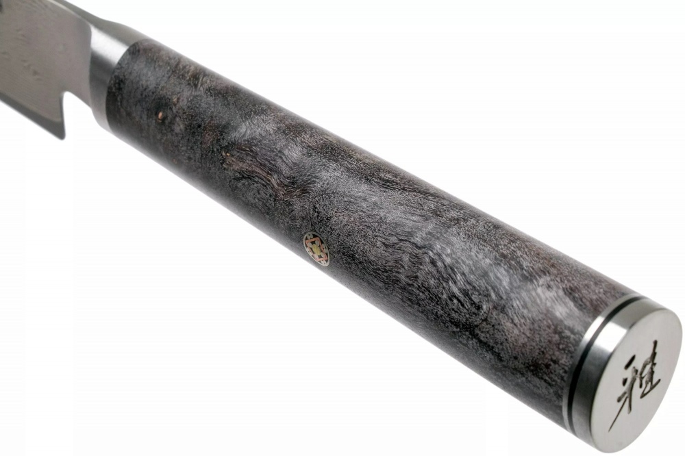 • Honbazuke slīpēta simetriska mala izcilam asumam, naža leņķis ap 10 grādiem katrā pusē