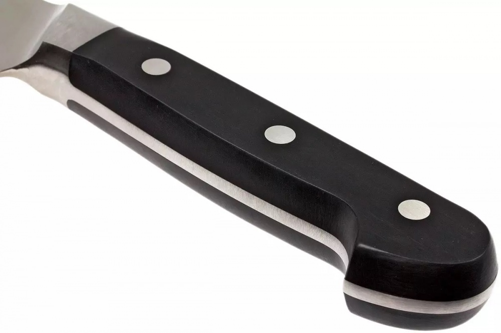 Asmens ir izgatavots no ledus rūdīta Friodur tērauda. Ražošanas procesā šāda veida tērauds 4 posmos tiek uzkarsēts līdz 1000 ° C, pēc tam atdzesēts līdz -70 ° C. Šī tehnoloģija, kuru pilnveidoja uzņēmums Zwilling, nodrošina, ka asums, izturība, elastība un izturība pret koroziju atbilst absolūti augstākais iespējamais standarts. Naža asināšana notiek 5 soļos. Rezultāts ir nevainojama naža mala. Balsts nesaskaras ar asmens malu, kas nozīmē, ka nazi ir salīdzinoši viegli uzasināt uz ūdens akmens.
