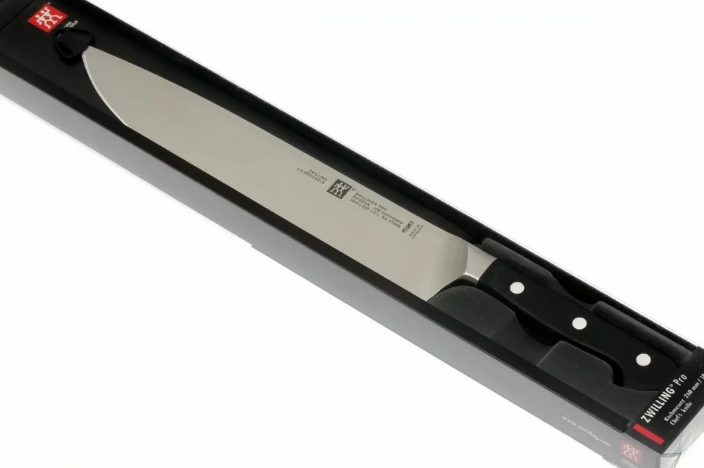 Zwilling Pro sērijas virtuves nažiem ir asmens, kas ir kalts no 1 tērauda gabala. Asmens pilnībā atrodas plastmasas rokturī: “full tang” konstrukcija. Rokturis ir piestiprināts pie tērauda ar 3 kniedēm. Pāreja starp rokturi un metālu ir nemanāma. Tas nozīmē, ka nav plaisu, kas savāc netīrumus. Šiem nažiem ir klasisks dizains un tie ir īpaši pievilcīgi tiem, kam patīk smagāka veida naži.