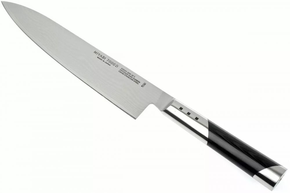 7000D sērijas naži Miyabi by Zwilling, kas apvieno vislabākās griešanas īpašības ar neatvairāmu dizainu. Šī skaistā naža radīšanā izmantoti tikai paši labākie materiāli. Turklāt nazis tiek asināts pēc tradicionālās trīsfāzu japāņu metodes, kā rezultātā tiek iegūts ne vairāk kā desmit grādu asināšanas leņķis: nepārspējami ass.