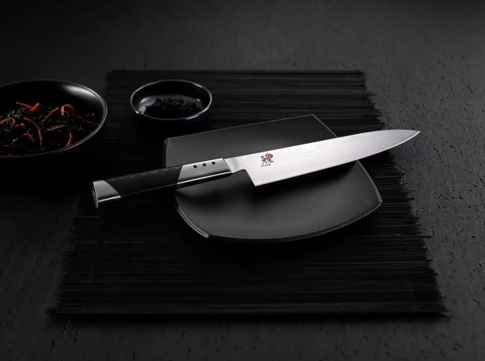 Tradicionālais japāņu D formas rokturis ir arī ergonomiski izstrādāts, lai novērstu nogurumu ilgstošu griešanas darbu laikā. Un kā zvaigznes atrakcija Miyabi logotips ir skaisti iegravēts roktura aizmugurē.