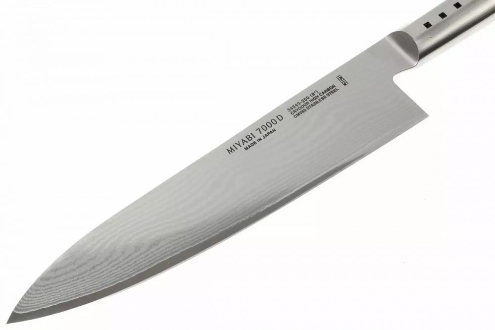 Asmens skaistums slēpjas 64 damaskas slāņos, kur ir sajaukti divi dažādi tērauda veidi. CMV60 pulvertērauda cietais kodols atrodas starp šiem dekoratīvajiem slāņiem. Kodols ir sacietējis līdz pat 60 HR, pateicoties Cryodur ledus sacietēšanas procesam līdz -196 grādiem pēc Celsija. Tas padara Miyabi par ārkārtīgi ilgtspējīgu nazi. tas ir ļoti izturīgs un vajadzības gadījumā viegli asināms.